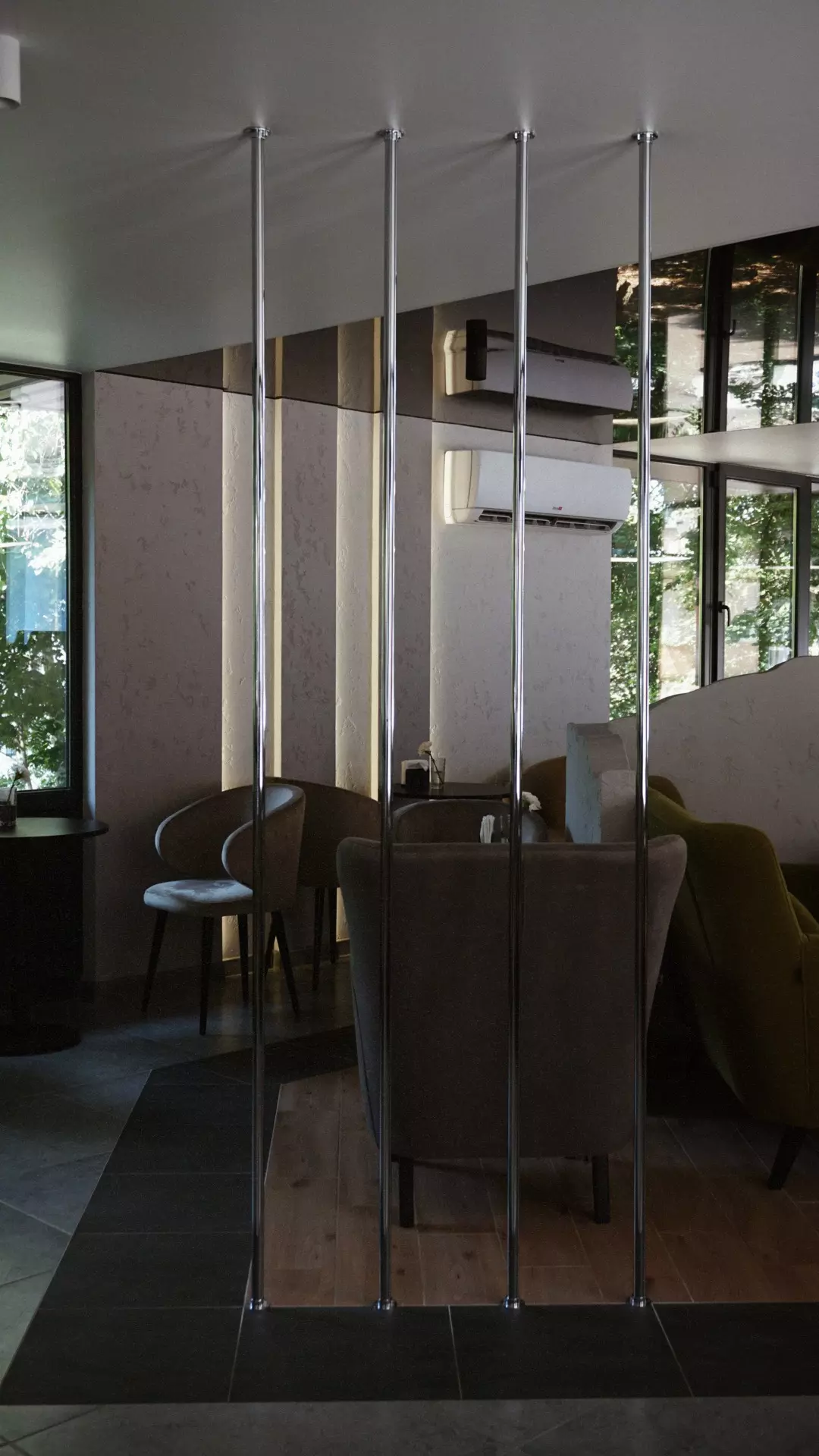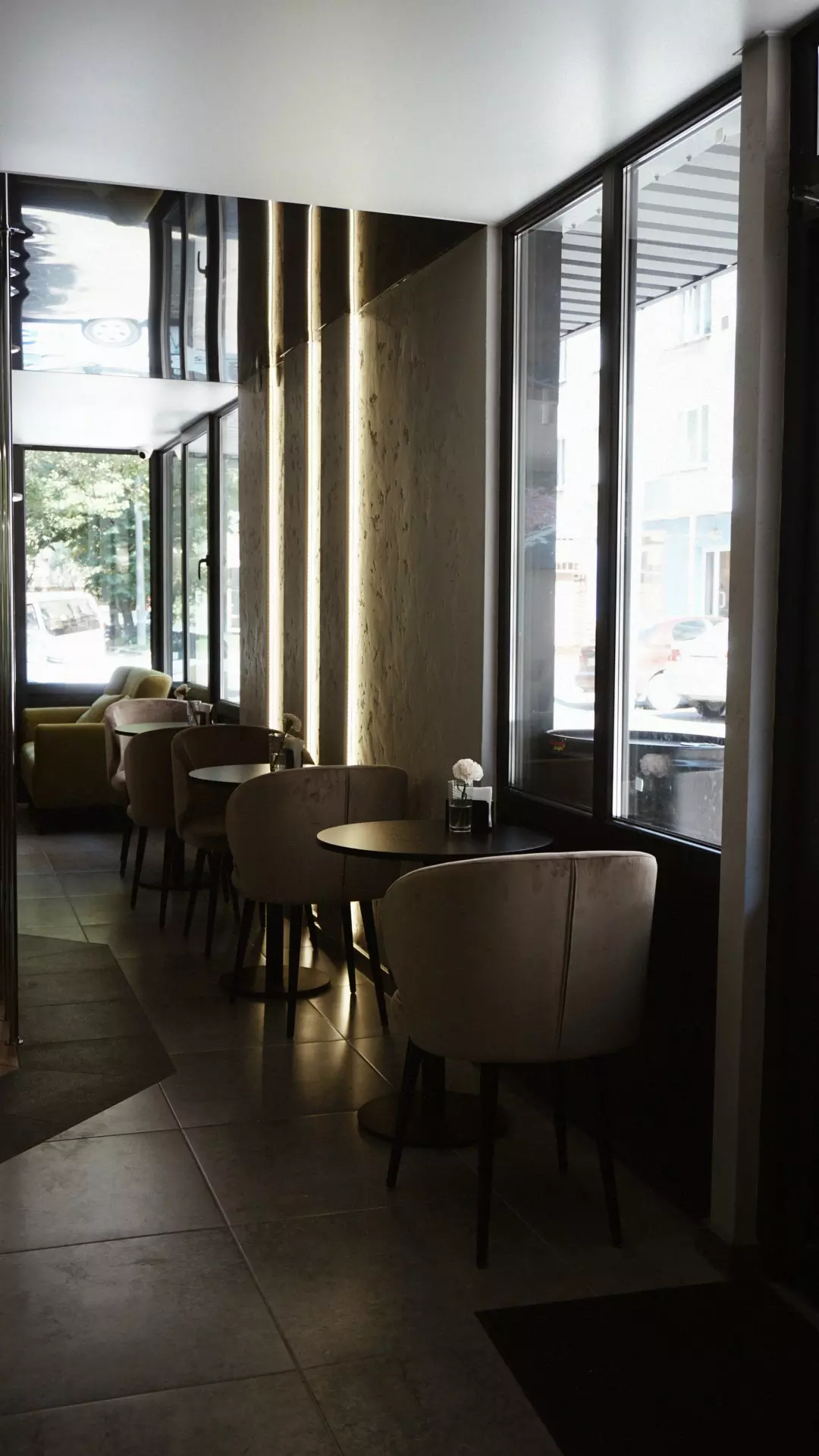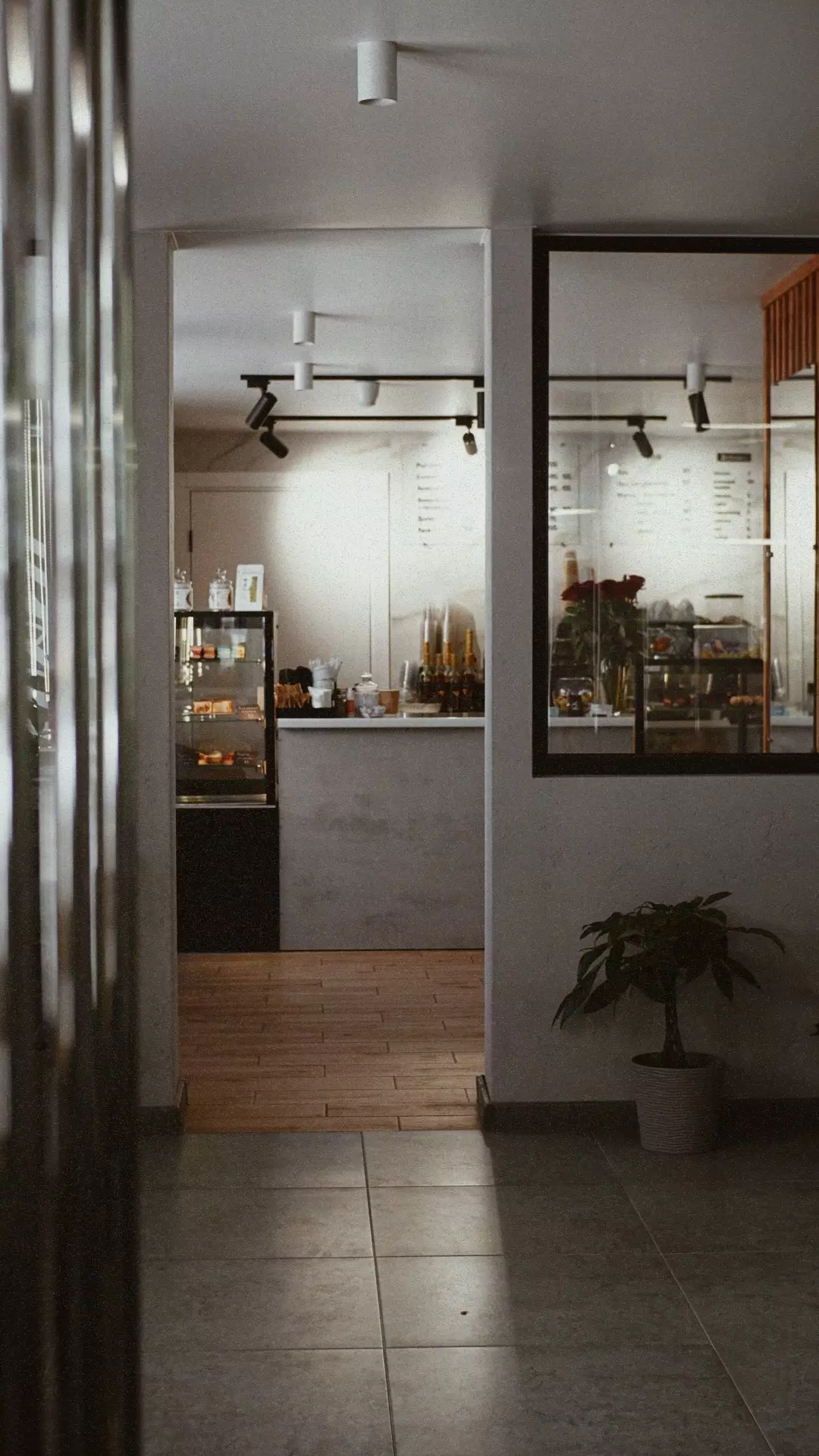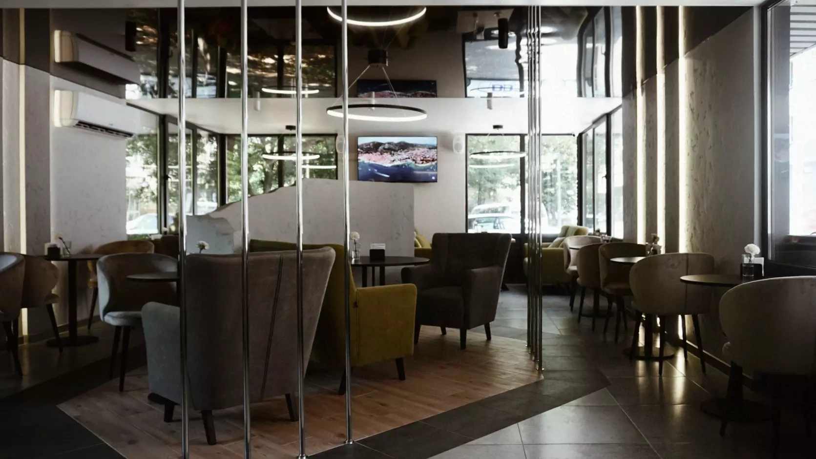 Інтер’єр кав’ярні Daily створений у сучасному лофт-стилі з м’яким, затишним характером. Поєднання текстур бетону, дерева та глибоких відтінків формує комфортну атмосферу для зустрічей і неспішної кави. Простір поділений на зони приватності та відкритої комунікації, а продумане освітлення підкреслює настрій інтер’єру в будь-який час дня.